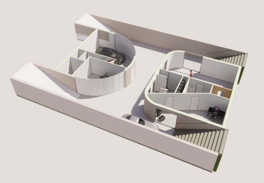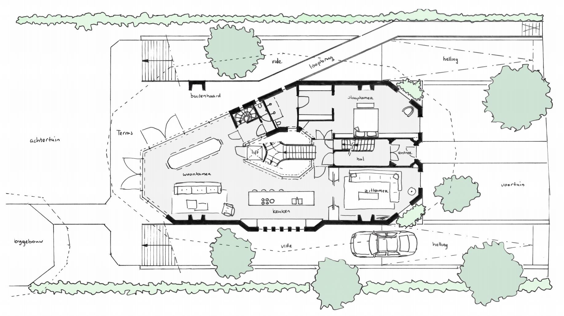 BAU heeft de opdracht gekregen om een uniek woonhuis te creëren, dat tevens ruimte biedt voor een Bed & Breakfast. Aangezien het kavel een maximaal bouwvolume heeft, moesten er manieren worden gevonden om het huis zo ruim en groot mogelijk te maken. Zo is ervoor gekozen om de ruimte onder de grond ook te benutten. Aan de hand van een uitgekiend ontwerp zijn het woonhuis en de Bed & Breakfast onder één vleugeldak samengebracht, zonder elkaar in de weg te staan.